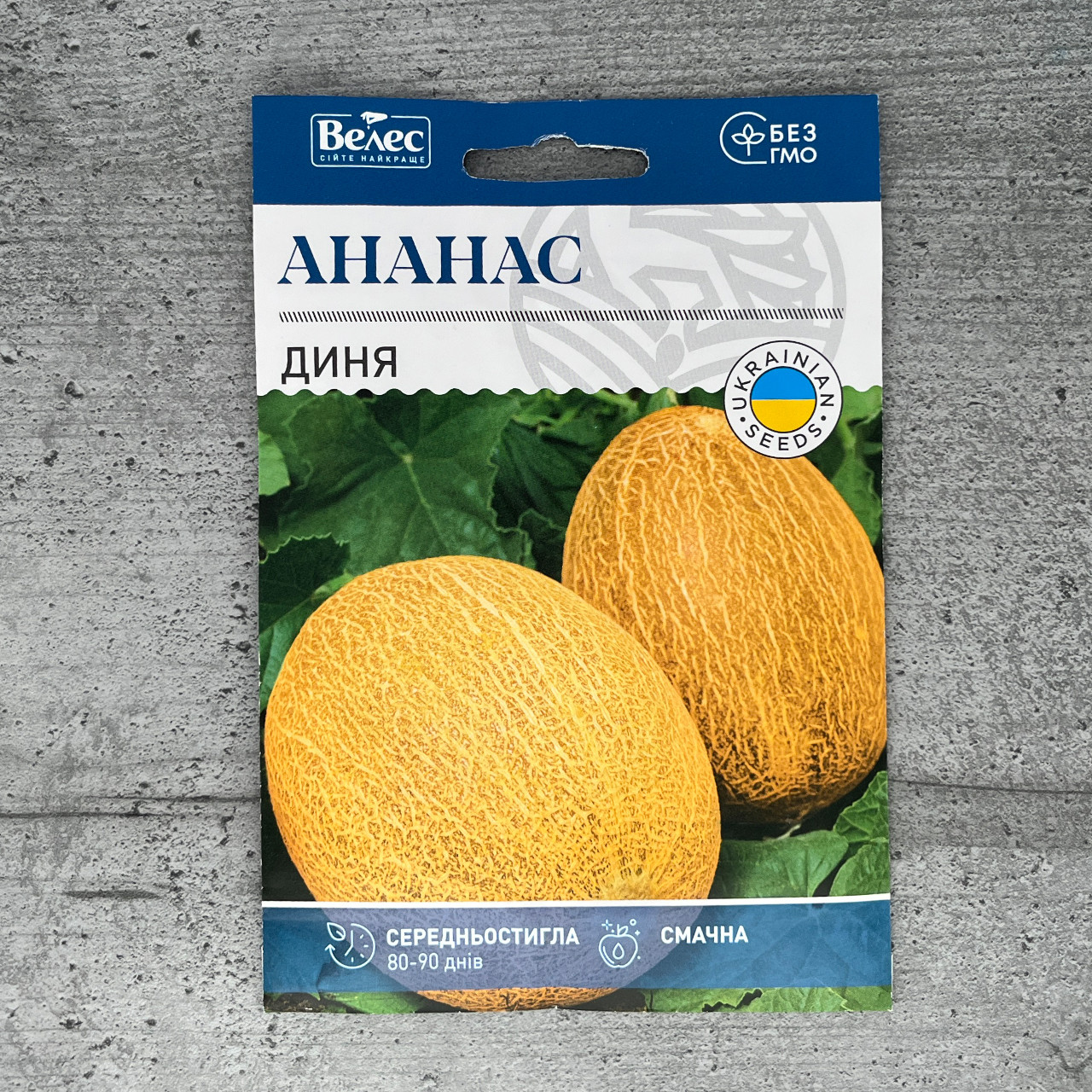 Середньостиглий сорт. Вегетаційний період - 75-95 днів. Плоди овальні, помаранчевого кольору, довжиною 14-16 см, масою 2-2,5 кг. М’якоть біла, соковита, масляниста та дуже ароматна, смак нагадує ананас. Плоди відрізняються чудовою транспотабельністю. У північних районах рекомендується вирощувати через розсаду.