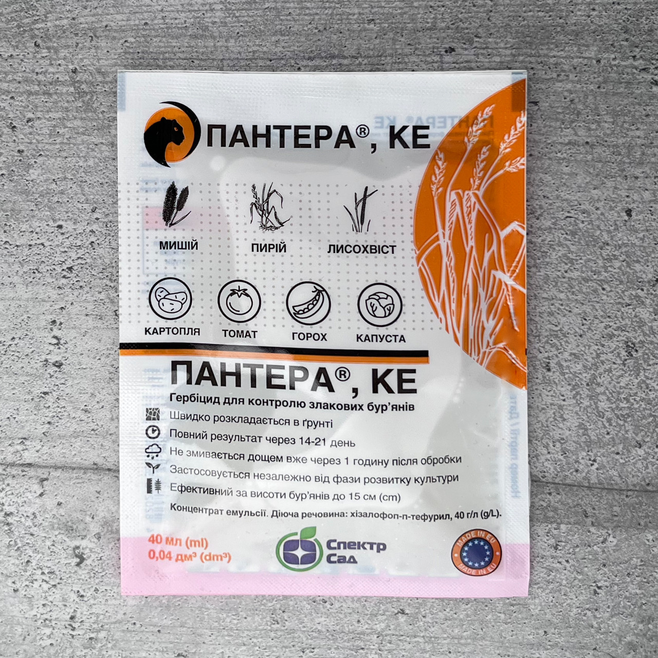 Системний гербіцид Пантера призначений для очищення посівів широколистяних культур від однорічних і багаторічних злакових бур'янів. Гербіцид вносять після відходів культури через обприскування в ранні, найуразливіші стадії розвитку бур'янів. Основний активний компонент у складі цього препарату — хізалофоп-П-тефуріл — характеризується системною дією, швидко поглинається рослинними тканинами та переміщeється всередині рослини, досягаючи зон активного росту.